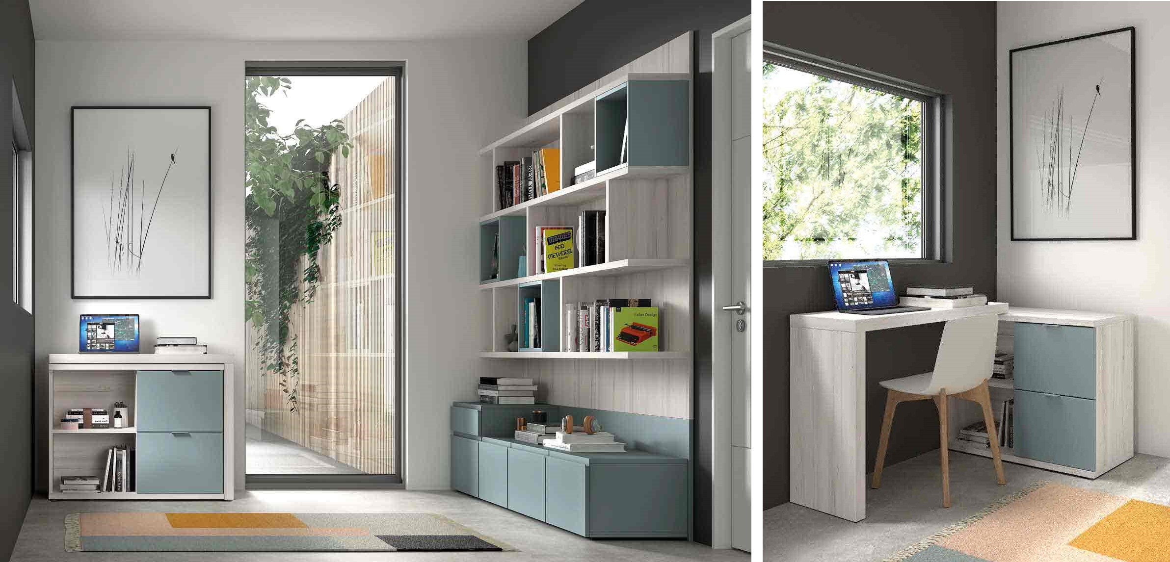 Bibliothèque avec bureau F803 PERSONNALISABLE sur les coloris, les poignées et les dimensions.