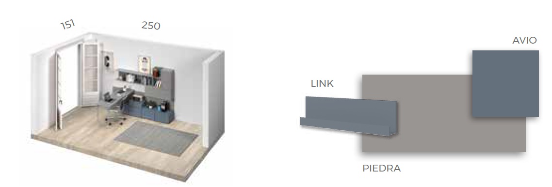 Les dimensions de la composition coté bibliothèque sont de L 250 x P 151 cm