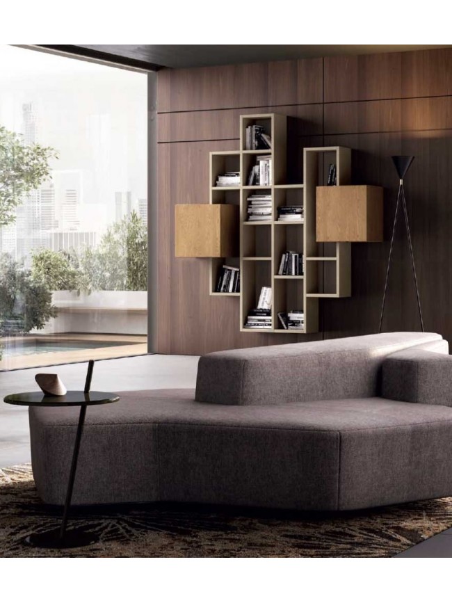 - Une bibliothèque asymétrique avec niches et 2 façades à ouverture push, à moduler selon ses envies