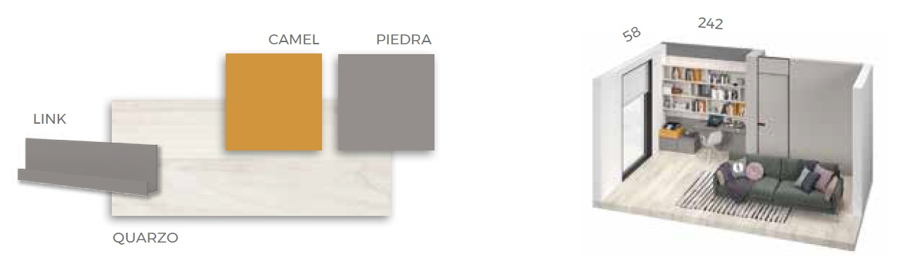 Les dimensions de la composition coté bibliothèque sont de L 242 x P 58 cm