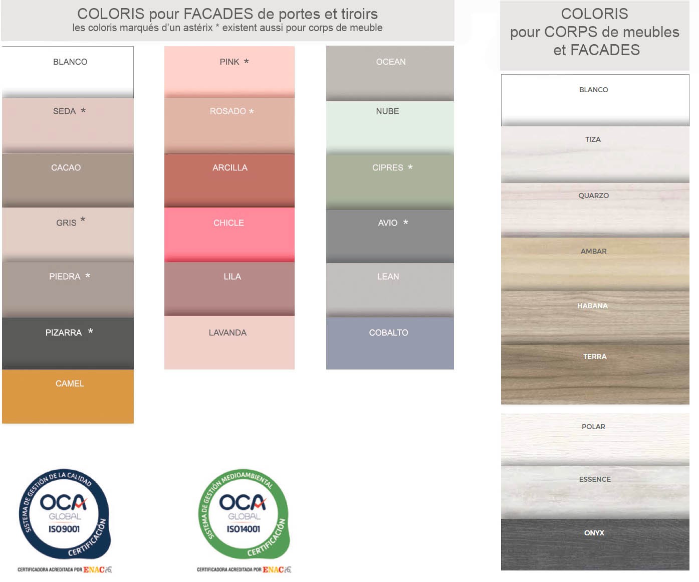 le ou les coloris des façades + le coloris des caissons + la poignée avec son coloris
