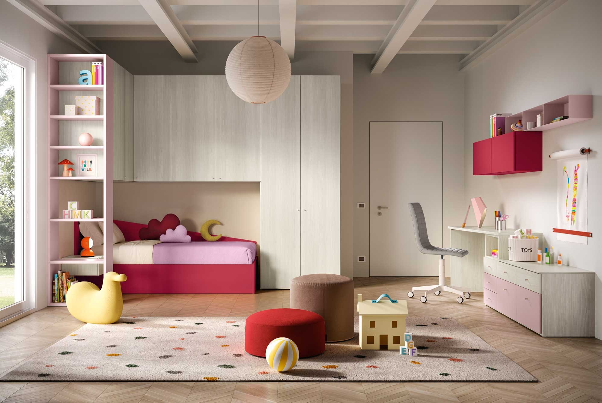 Pont de lit chambre fille avec rangement et lit canapé PERSONNALISABLE K119 - MORETTI COMPACT