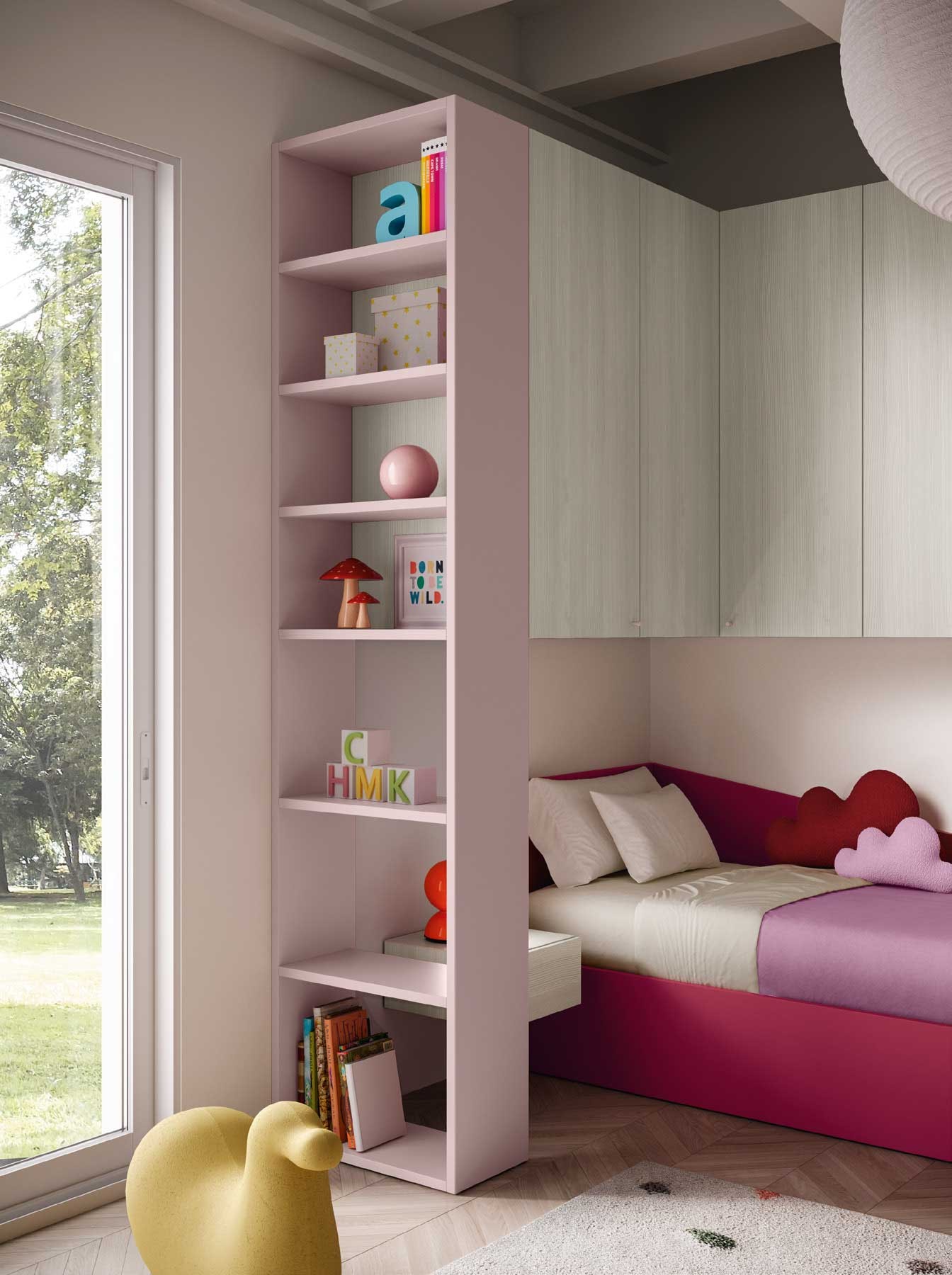 Ce pont de lit pour chambre enfant fille associe design contemporain et fonctionnalité. Grâce à son meuble pont d’angle sa bibliothèque et à son bureau moderne, il offre une solution gain de place idéale pour organiser l’espace tout en créant un univers harmonieux et élégant.