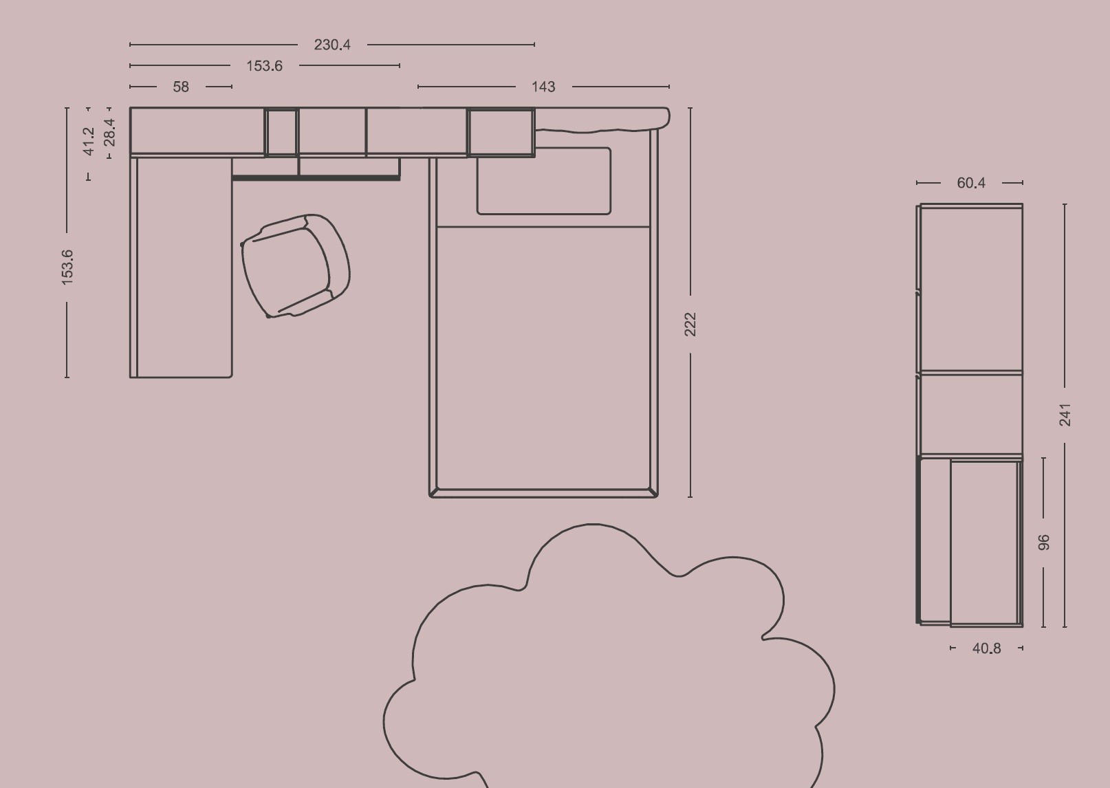 Ce lit ado au design contemporain s’accompagne de rangements et d'un bureau suspendu qui structurent l’espace tout en apportant une esthétique moderne et légère. Idéal pour une chambre d’adolescent, il allie fonctionnalité, style et optimisation de l’espace.