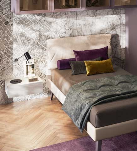 Le lit ado tapissé offre un confort optimal et une sécurité renforcée grâce à son cadre et sa tête de lit entièrement recouverts de tissu