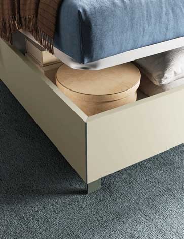 Ce lit coffre avec sommier relevable combine confort, fonctionnalité et gain de place.