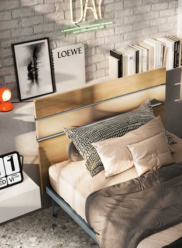 Chambre enfant PERSONNALISABLE Y119 avec lit enfant original au style urbain avec tête de lit lumineuse.
