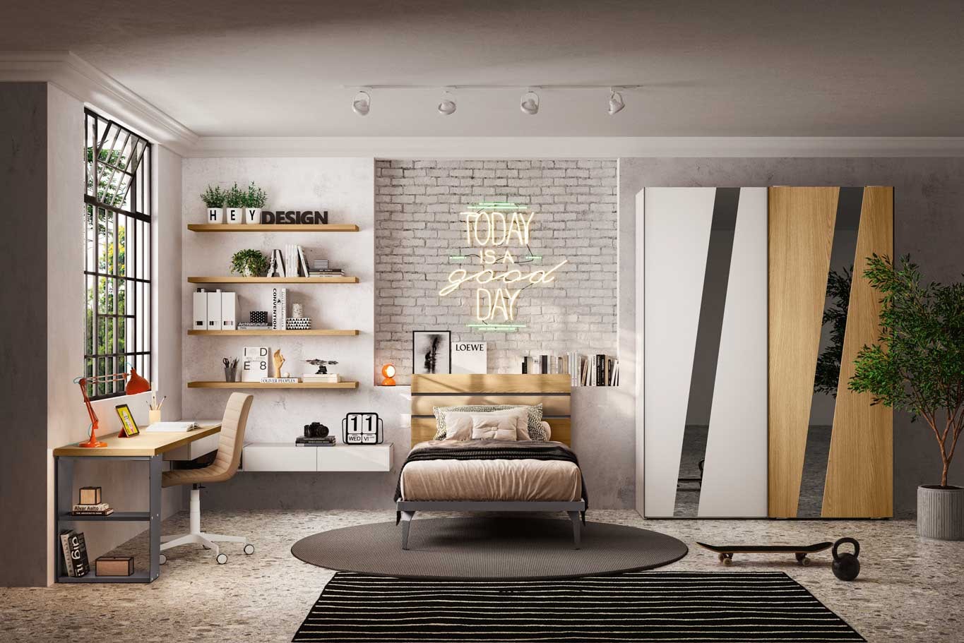 Chambre enfant PERSONNALISABLE Y119 avec lit enfant original au style urbain.