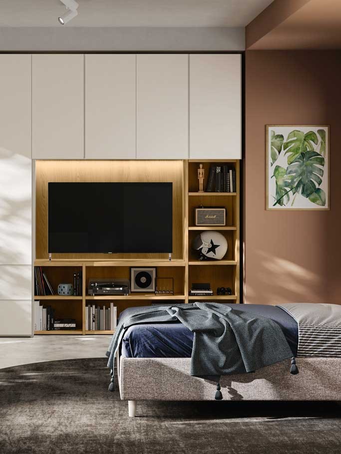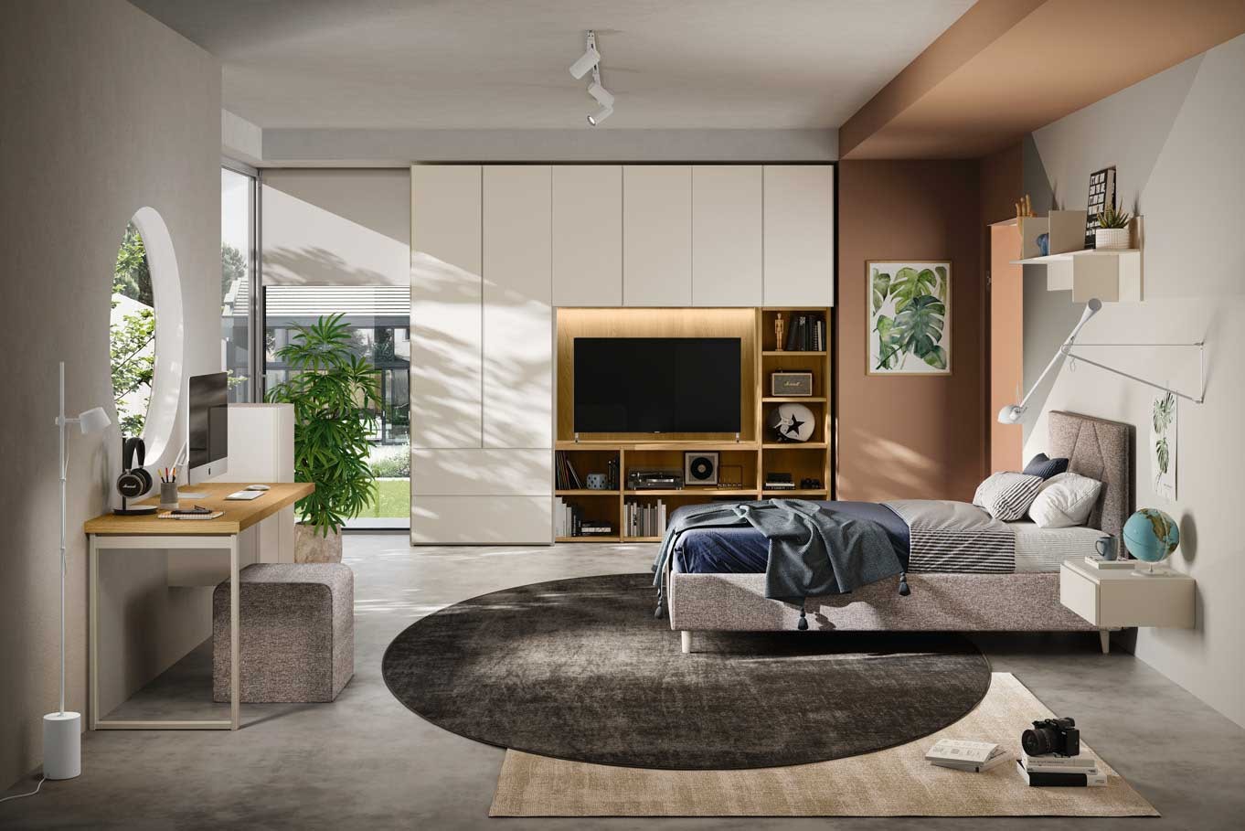 Chambre adulte avec dressing bibliothèque et bureau PERSONNALISABLE Y104 - MORETTI COMPACT