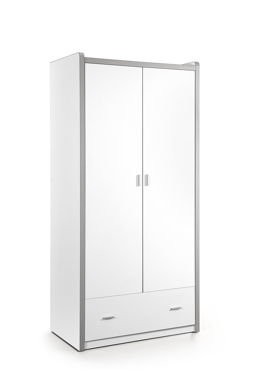 l'armoire 2 portes assortie, composée de 1 grand tiroir, 2 étagères et 1 barre de penderie L 96.5 P 60 H 202 cm ref: BONKL22 |