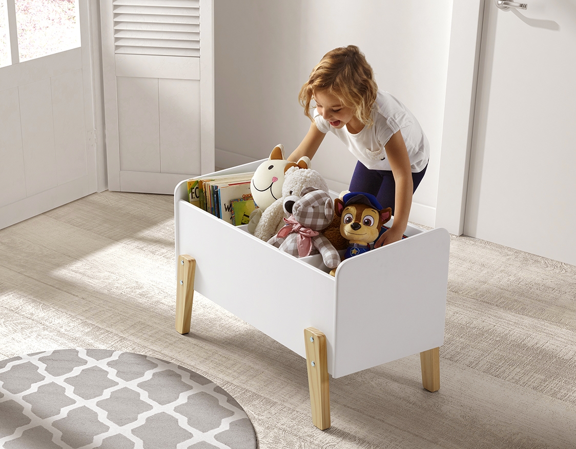 | le coffre à jouets COPENHAGUE assorti L 40 P 40 H 36 cm en PIN de Scandinavie et MDF avec laque anti-UV (non jaunissante) blanche ref KITB10 |