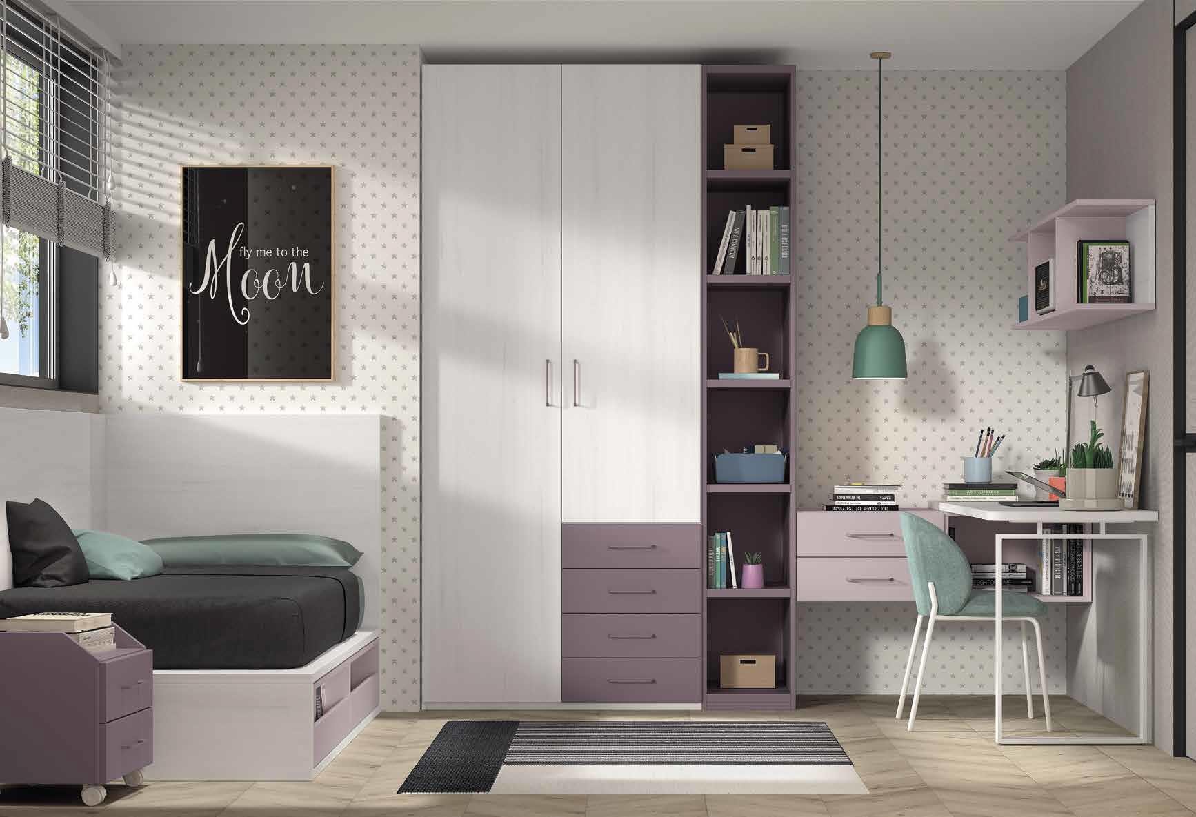 Chambre enfant fille avec bureau d'angle F307 - GLICERIO EVOLUTION