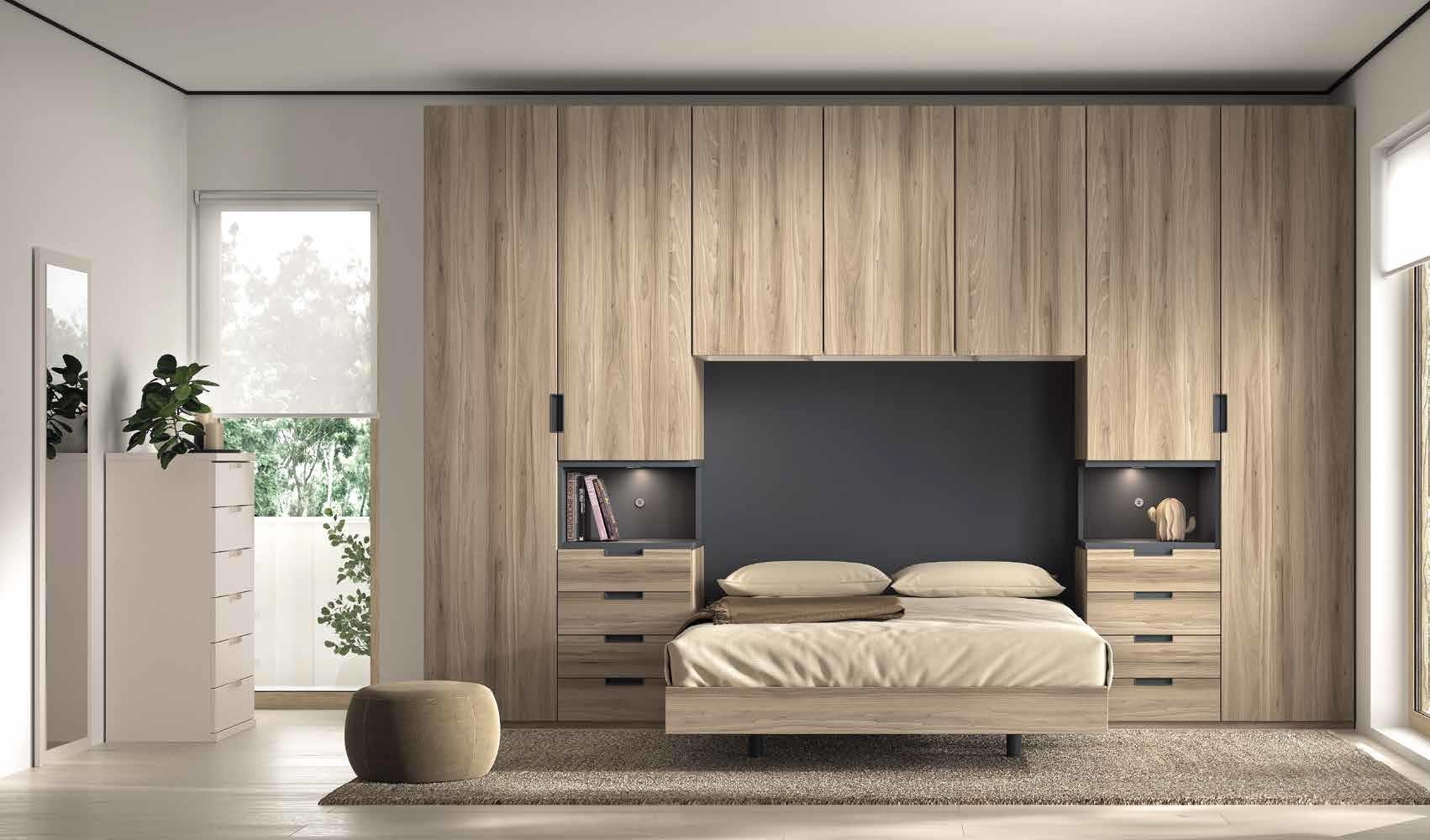 Chambre avec lit double et pont de lit F310 PERSONNALISABLE sur les coloris, les poignées et les dimensions.