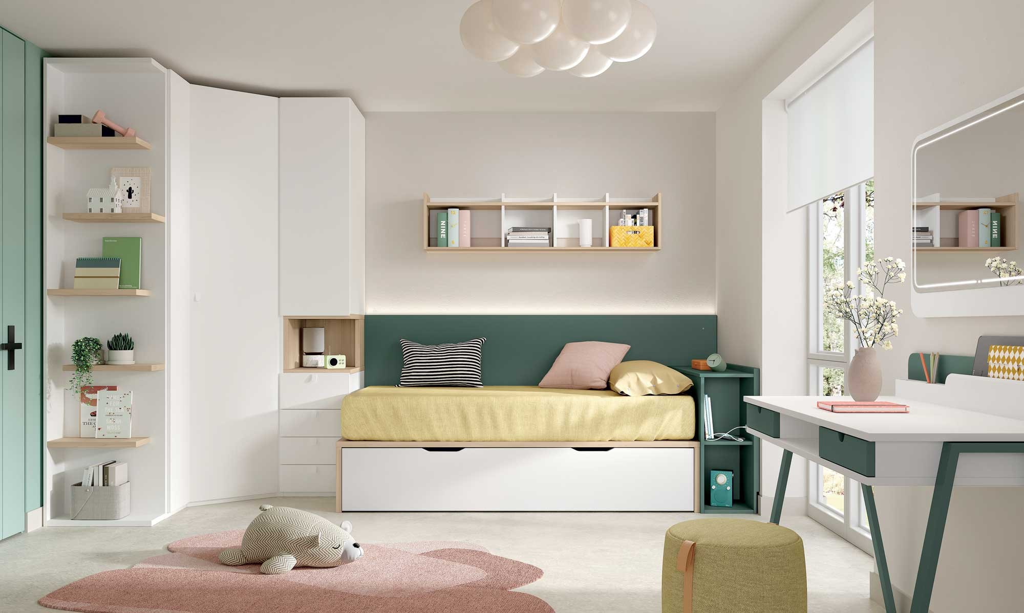 Chambre enfant moderne avec lit gigogne F001 PERSONNALISABLE sur les coloris, les poignées et les dimensions.