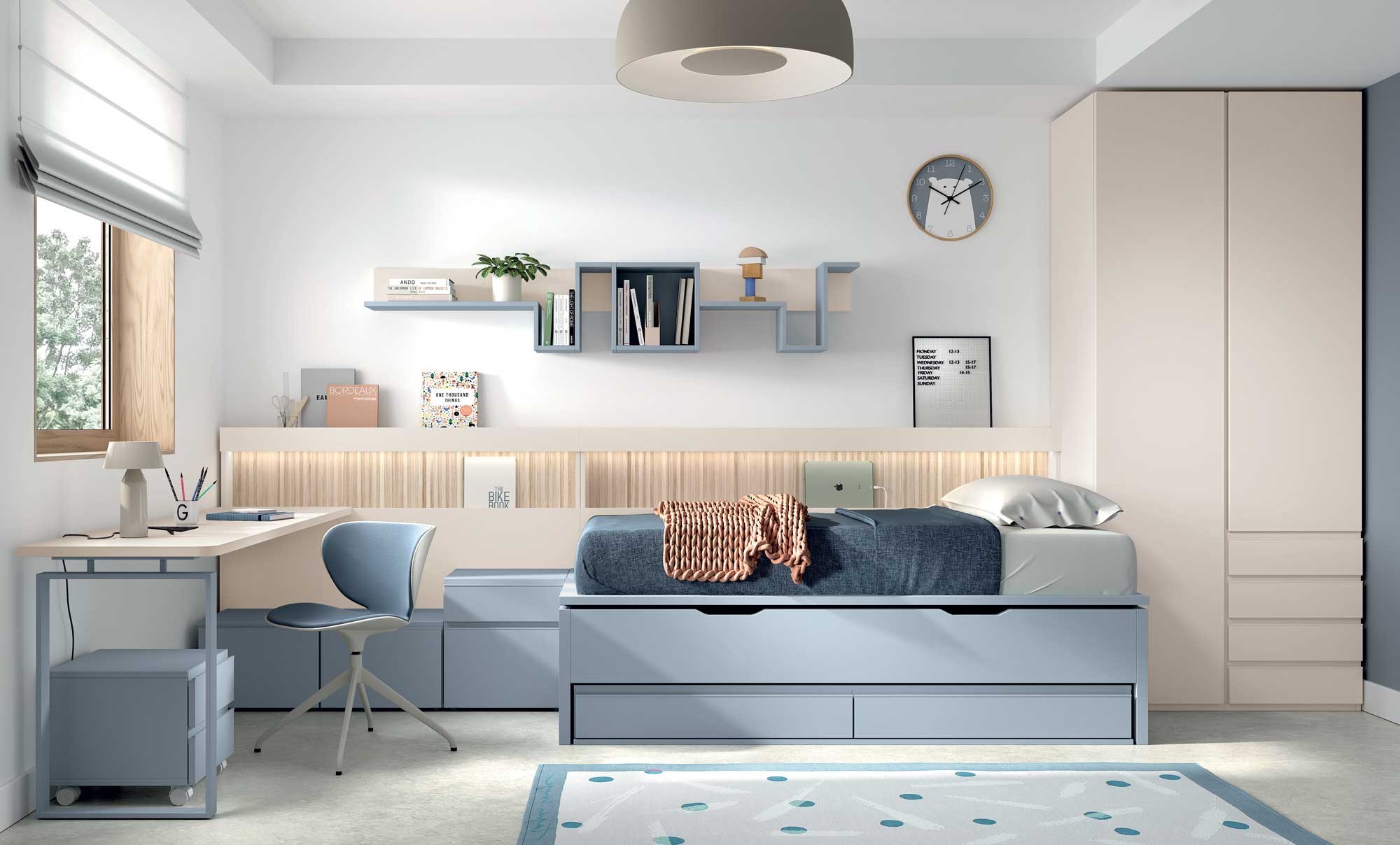 La chambre AD054 avec le lit avec tiroirs et lit gigogne coulissant, est PERSONNALISABLE