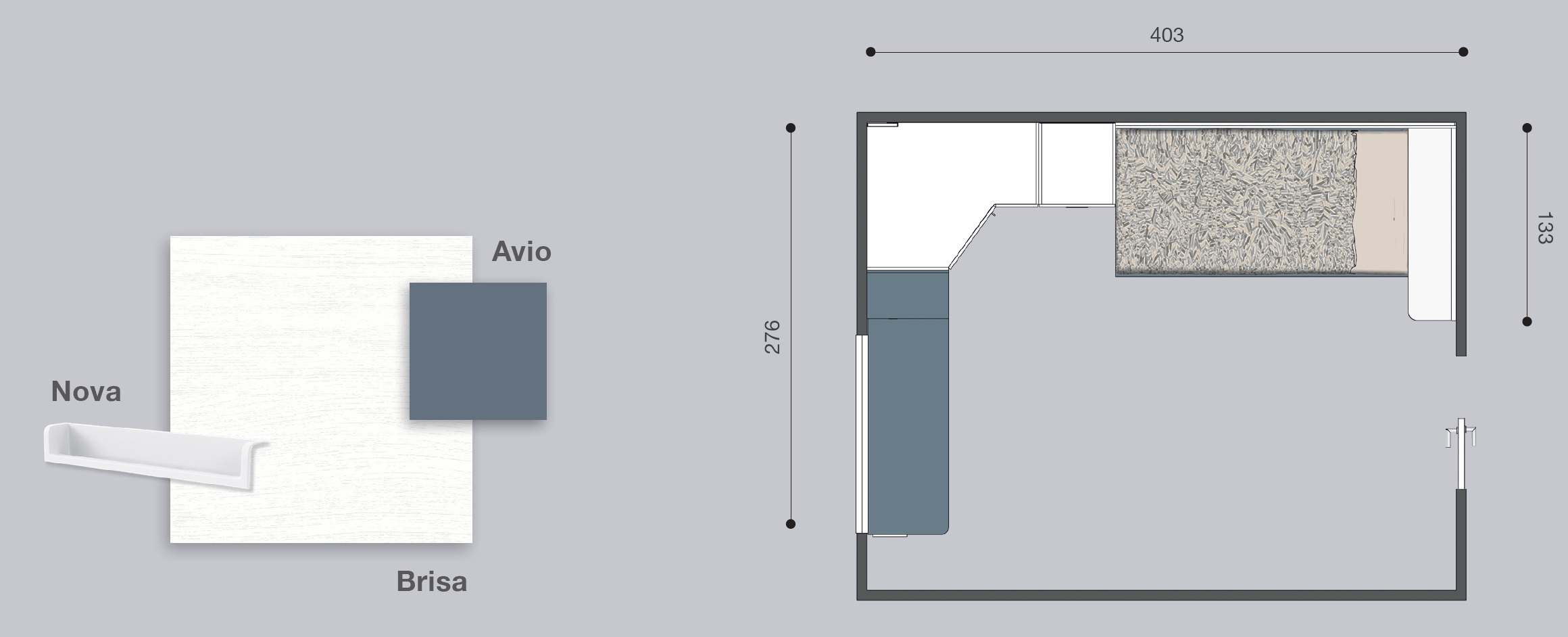 Les dimensions de la composition coté lit L 403 cm P 133 cm, et coté bureau L 276 cm