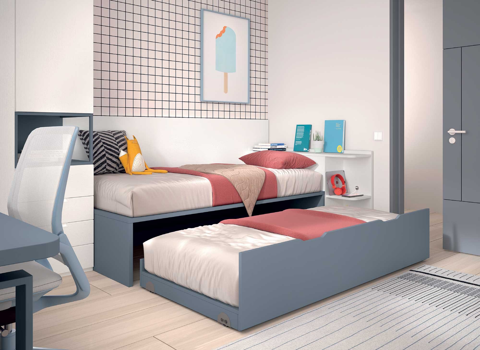 La chambre AD056 avec le lit gigogne coulissant sur roulettes, est PERSONNALISABLE