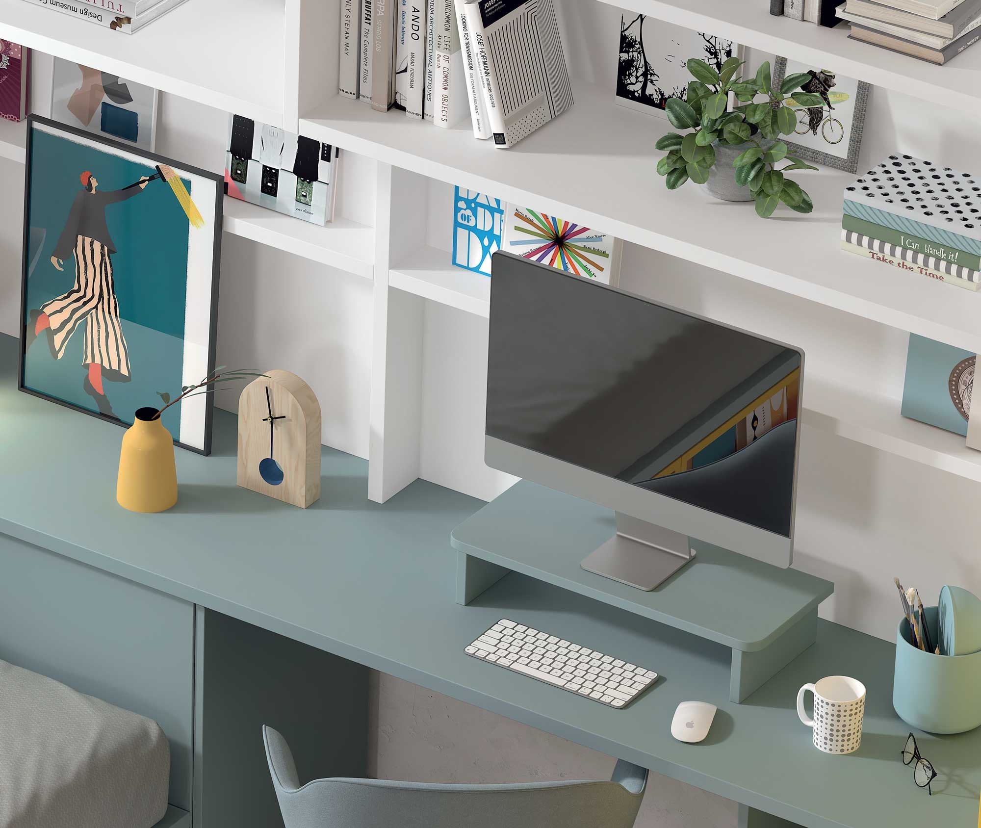 - Un meuble en tête de lit extra-profond qui coulisse sous le bureau