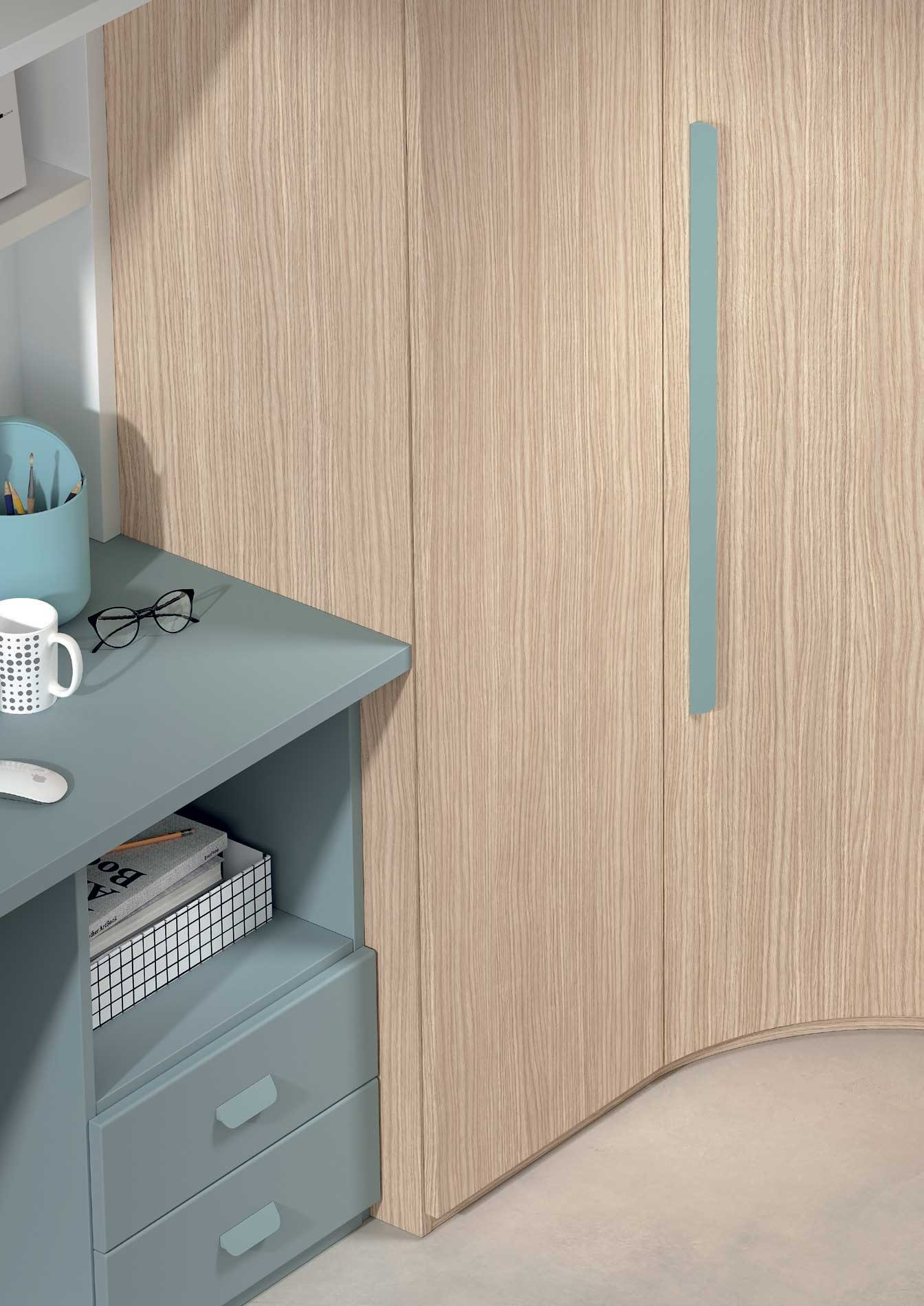 Chambre enfant moderne avec lit banquette AD063 PERSONNALISABLE, sur les coloris, les poignées et les dimensions.
