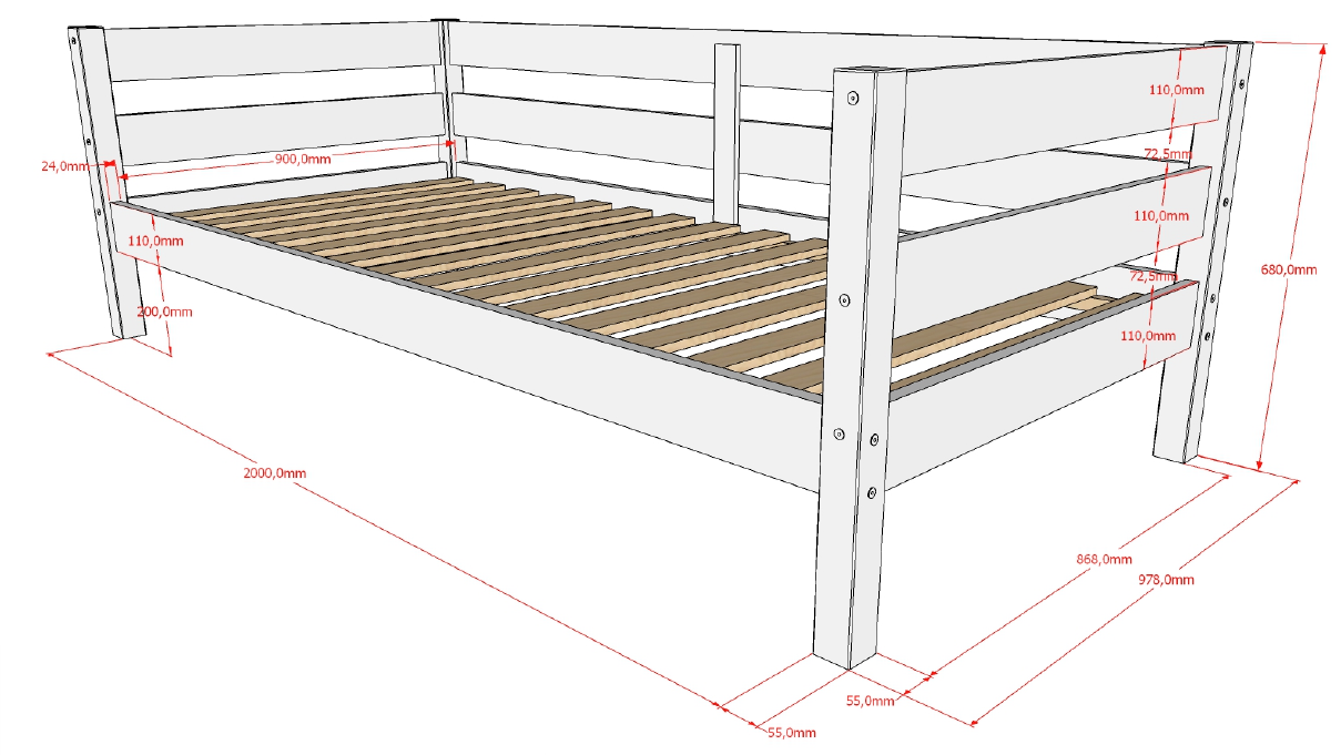 Dimensions du lit : L 211 P 97,8 H 68 cm