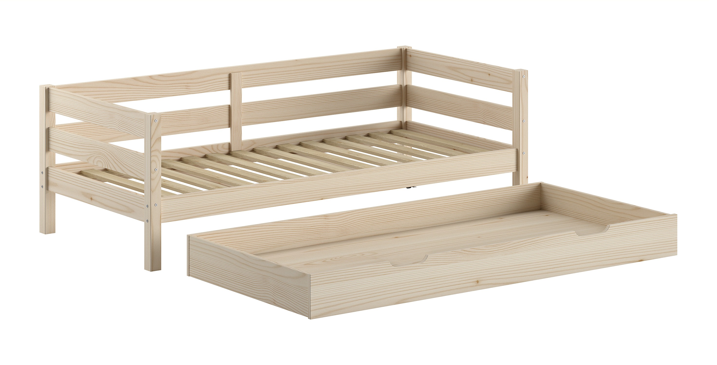 Le lit banquette est livré avec un sommier à lattes en bois pour un couchage en 90 x 200 cm.