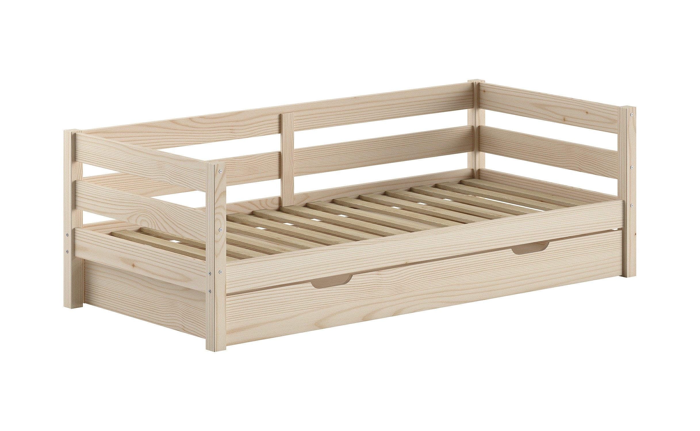 Le lit banquette est livré avec un sommier à lattes en bois pour un couchage en 90 x 200 cm.