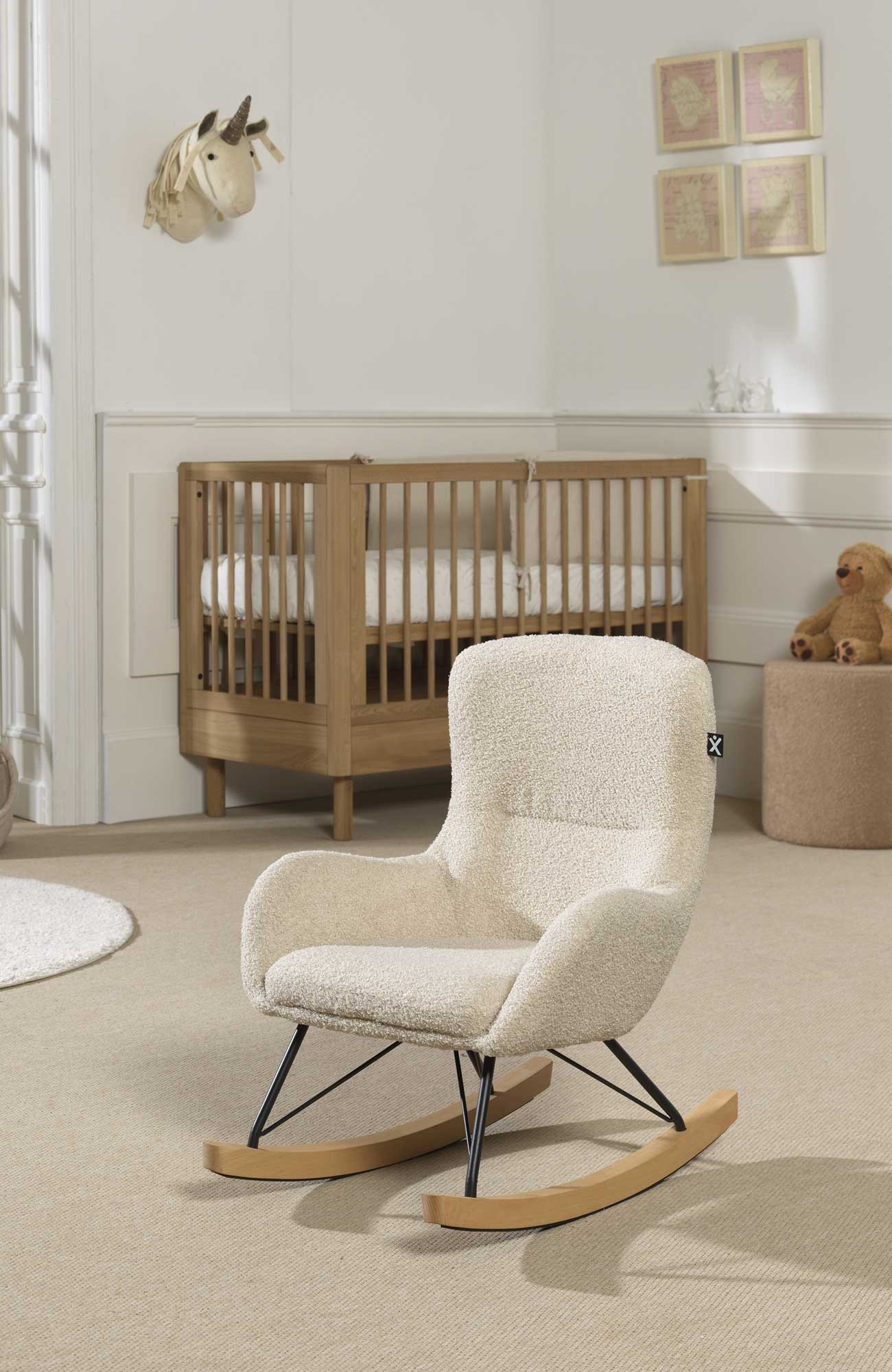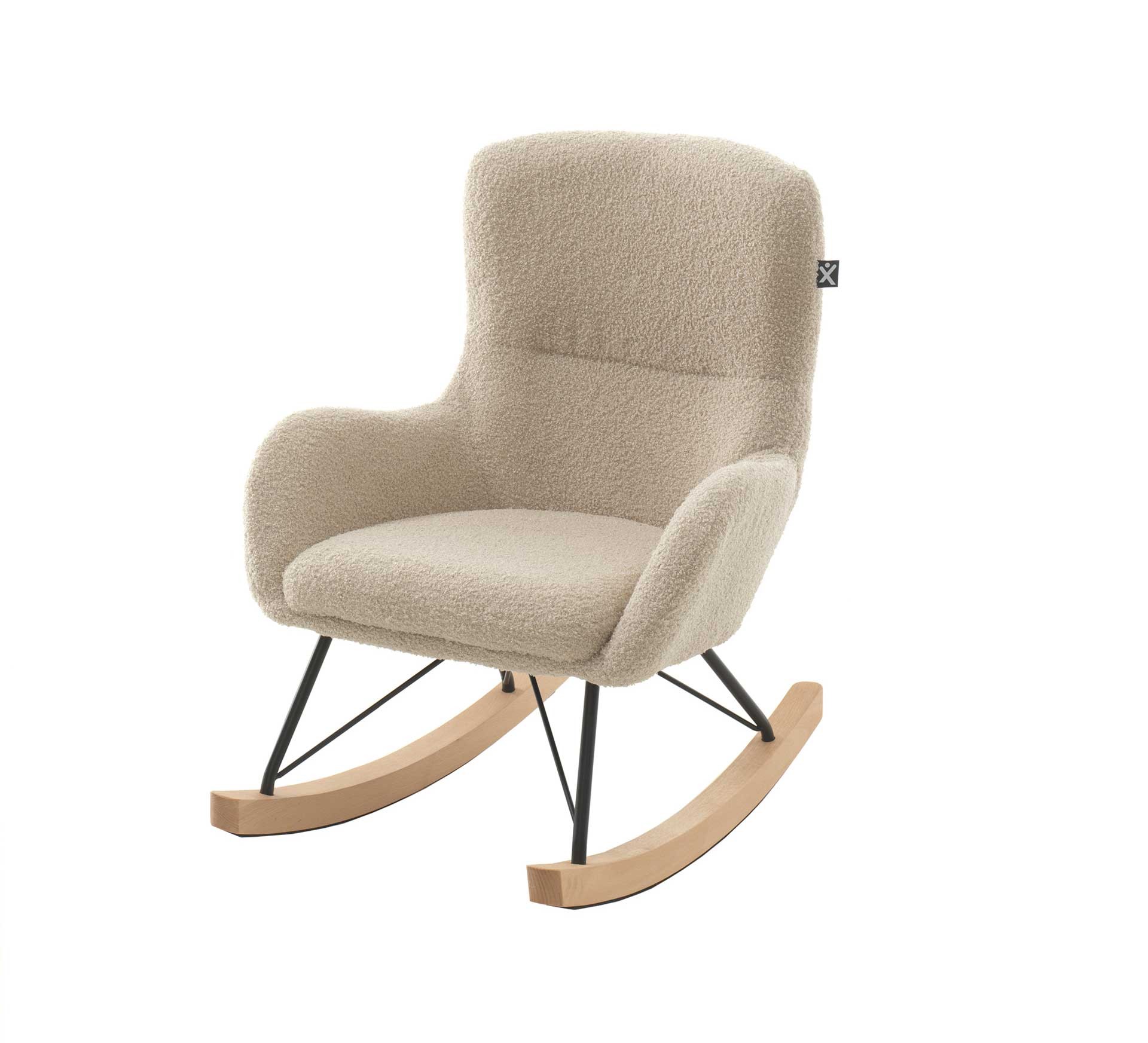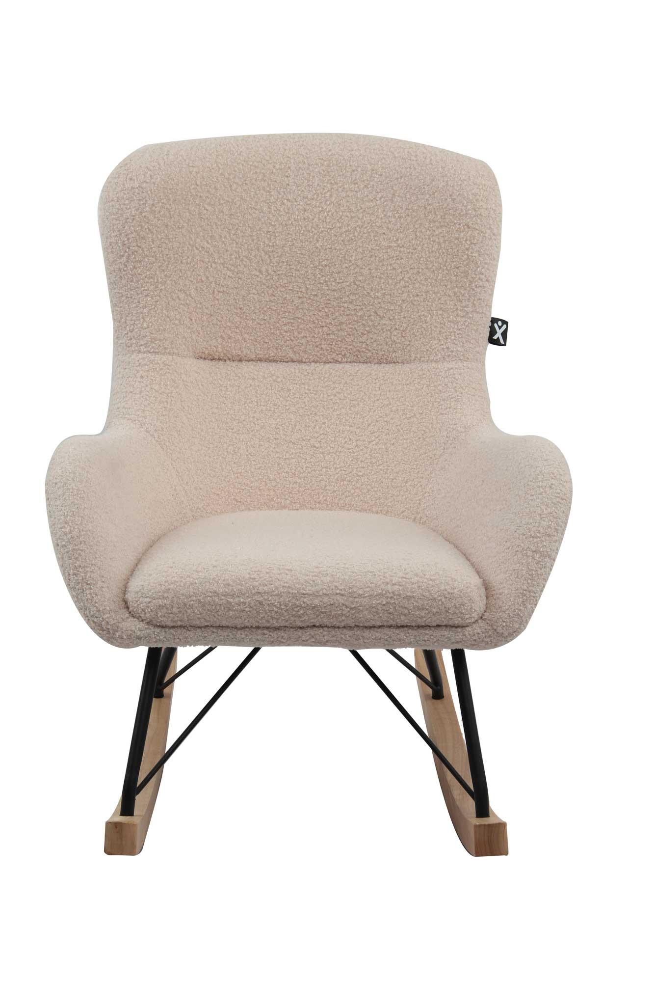 La chaise à bascule enfant ROCKING est recouverte d'un tissu bouclé épais coloris TEDDY beige.
