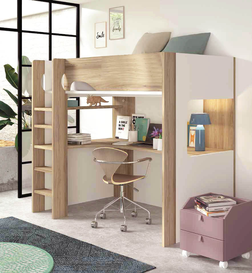 Lit mezzanine bureau petit espace pour enfant, ado ou adulte
