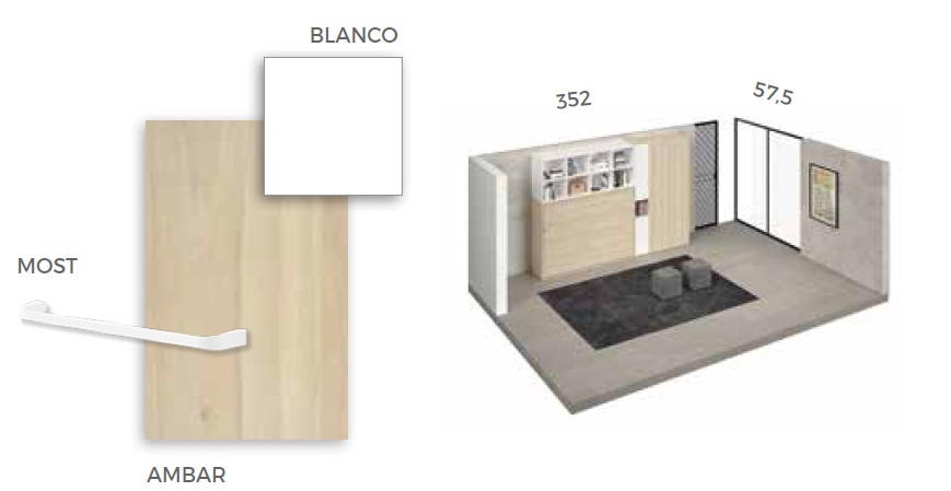 Lit escamotable horizontal avec bibliothèque F260 PERSONNALISABLE sur les coloris, les poignées et les dimensions.