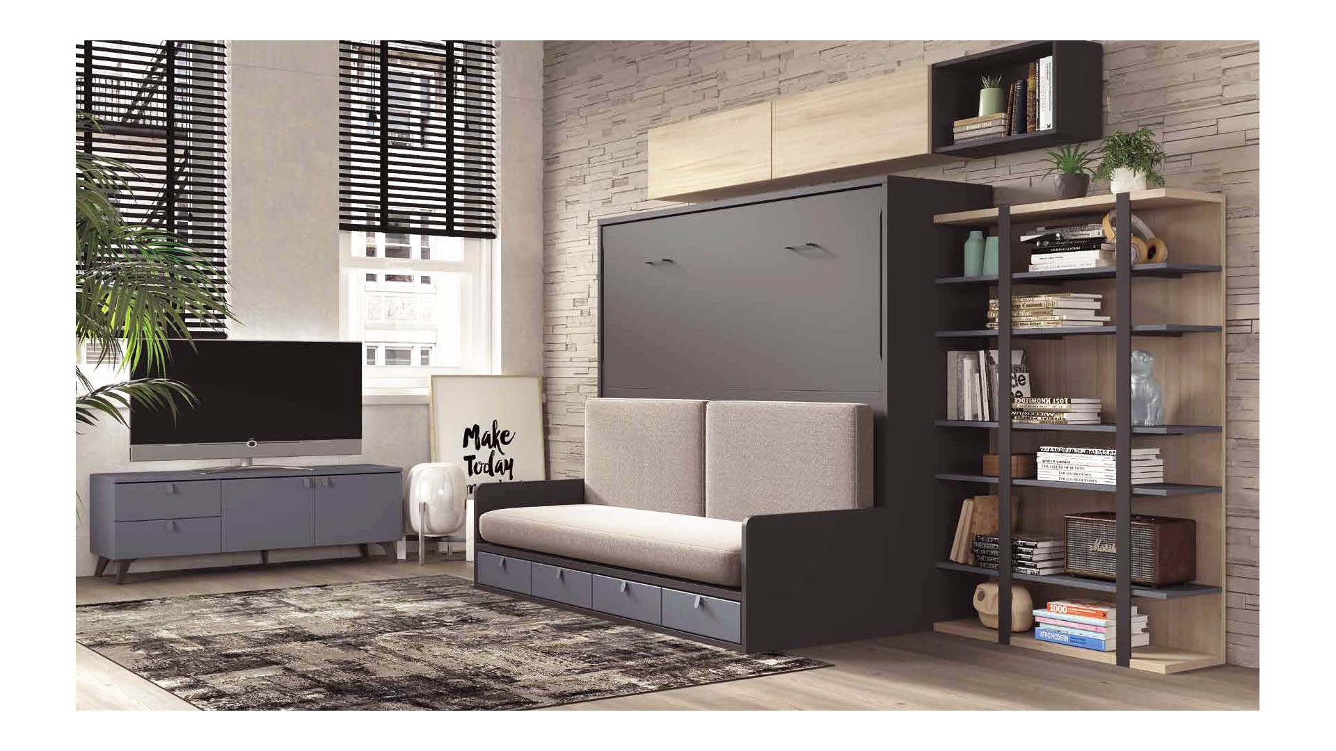Lit escamotable avec canapé et meuble TV F268 - GLICERIO EVOLUTION
