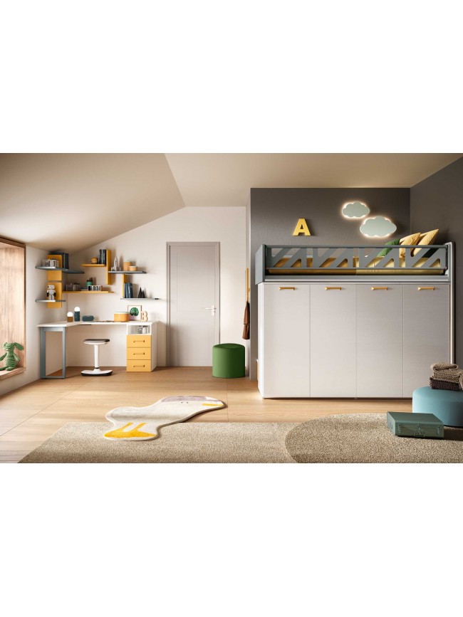 Lit mezzanine avec bureau et armoire F205 - GLICERIO EVOLUTION