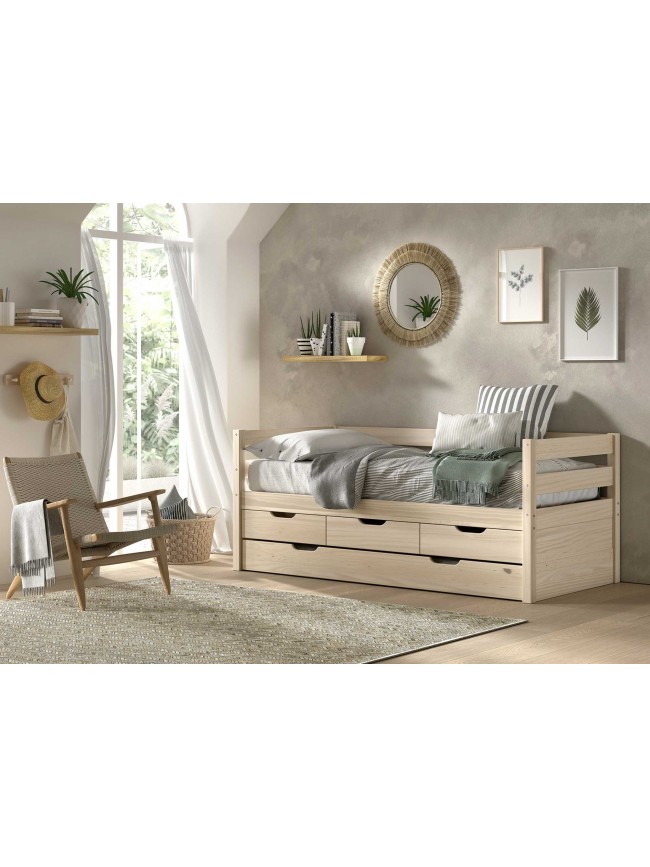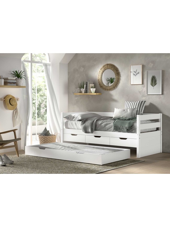 - un lit bas avec 4 coffres de rangement et 1 panneau d'habillage mural