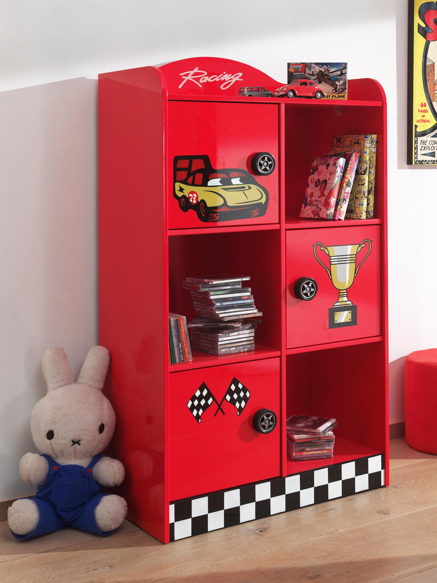 Chevet 2 tiroirs de L 470 x H 394 x P 470 mm coloris rouge avec poignée "roue de voiture" Option avec plus-value de 144 € SC865NAR |