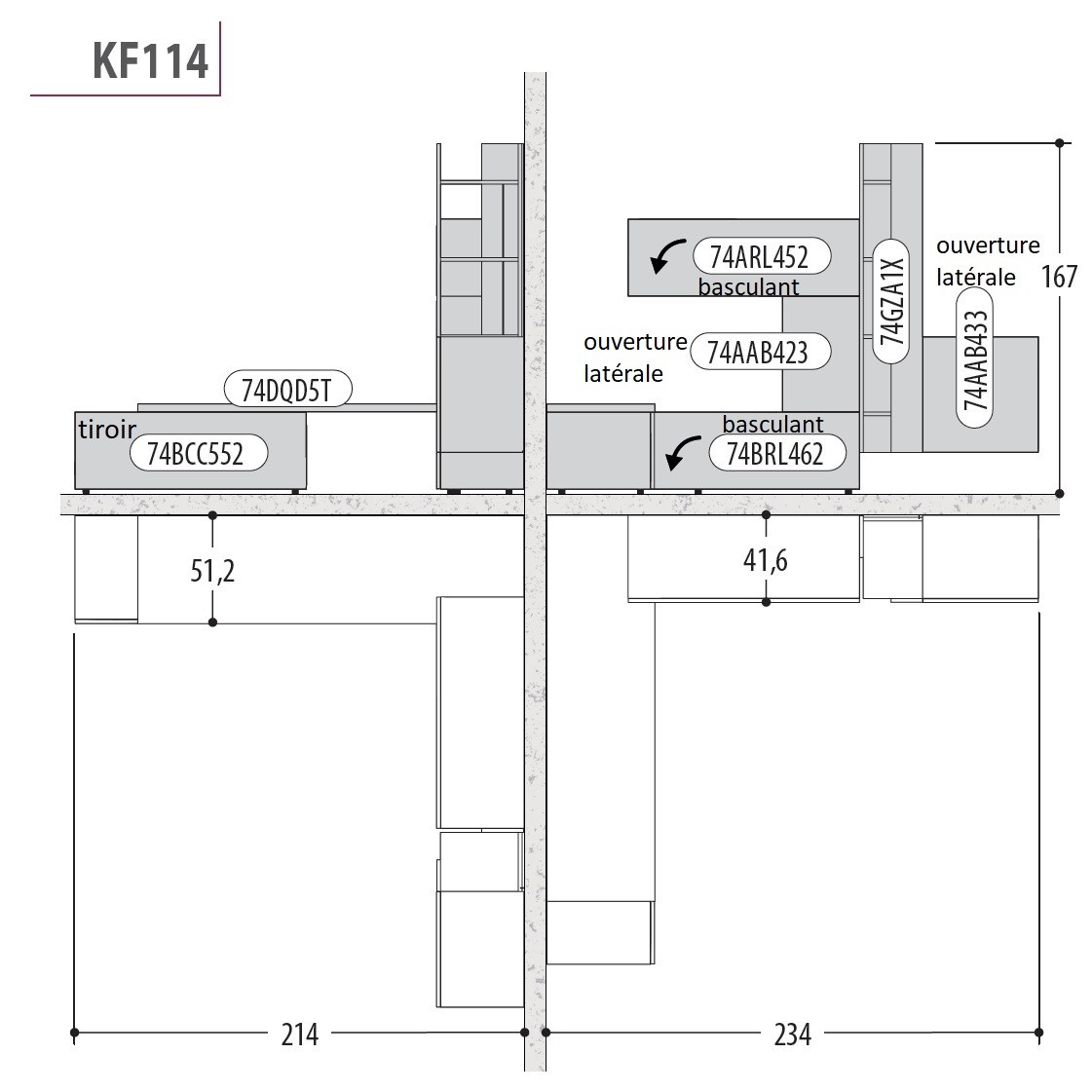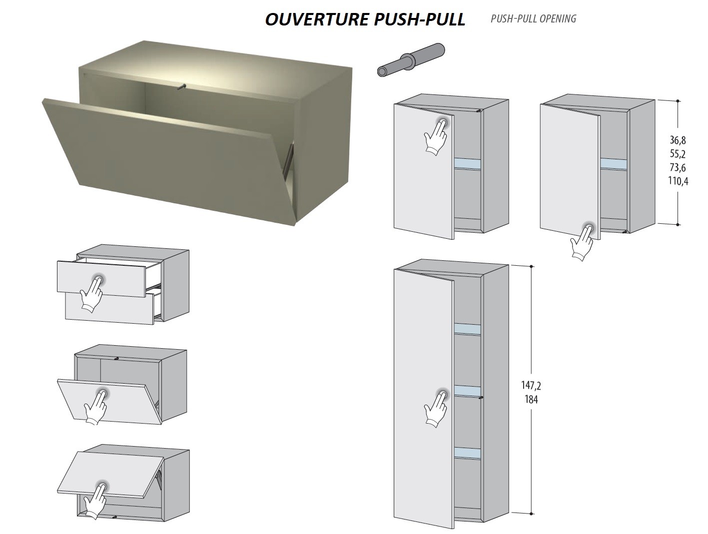 1 Module horizontal suspendu avec porte relevante - à ouverture push-pull