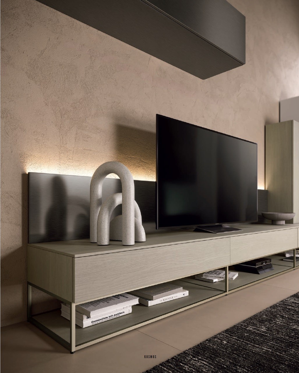 Meuble TV moderne design italien PERSONNALISABLE KC107 allie différentes textures pour un effet chic