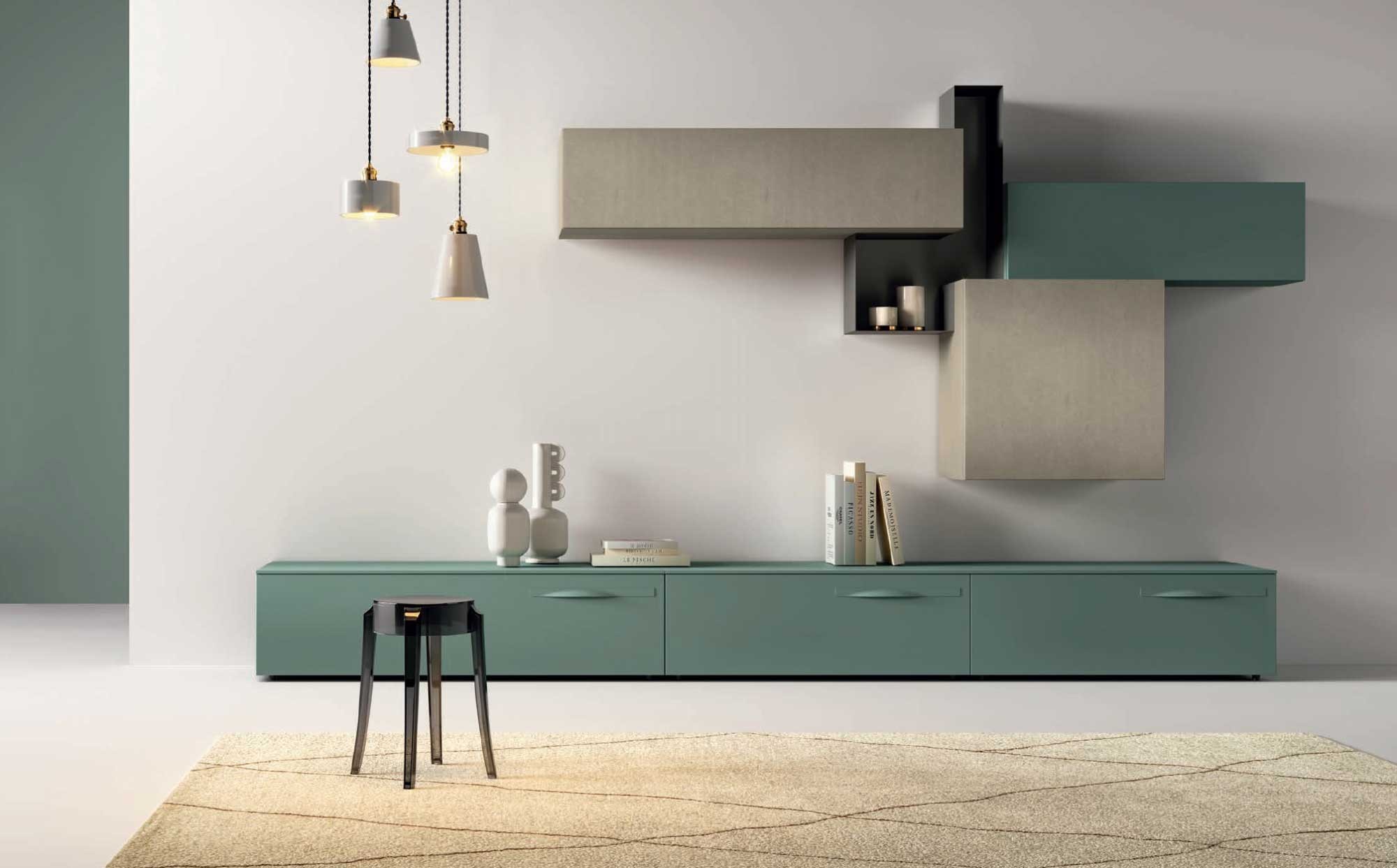 Meuble de séjour contemporain avec meubles en aspect ciment PERSONNALISABLE KC102 - KOSMOS MORETTI COMPACT