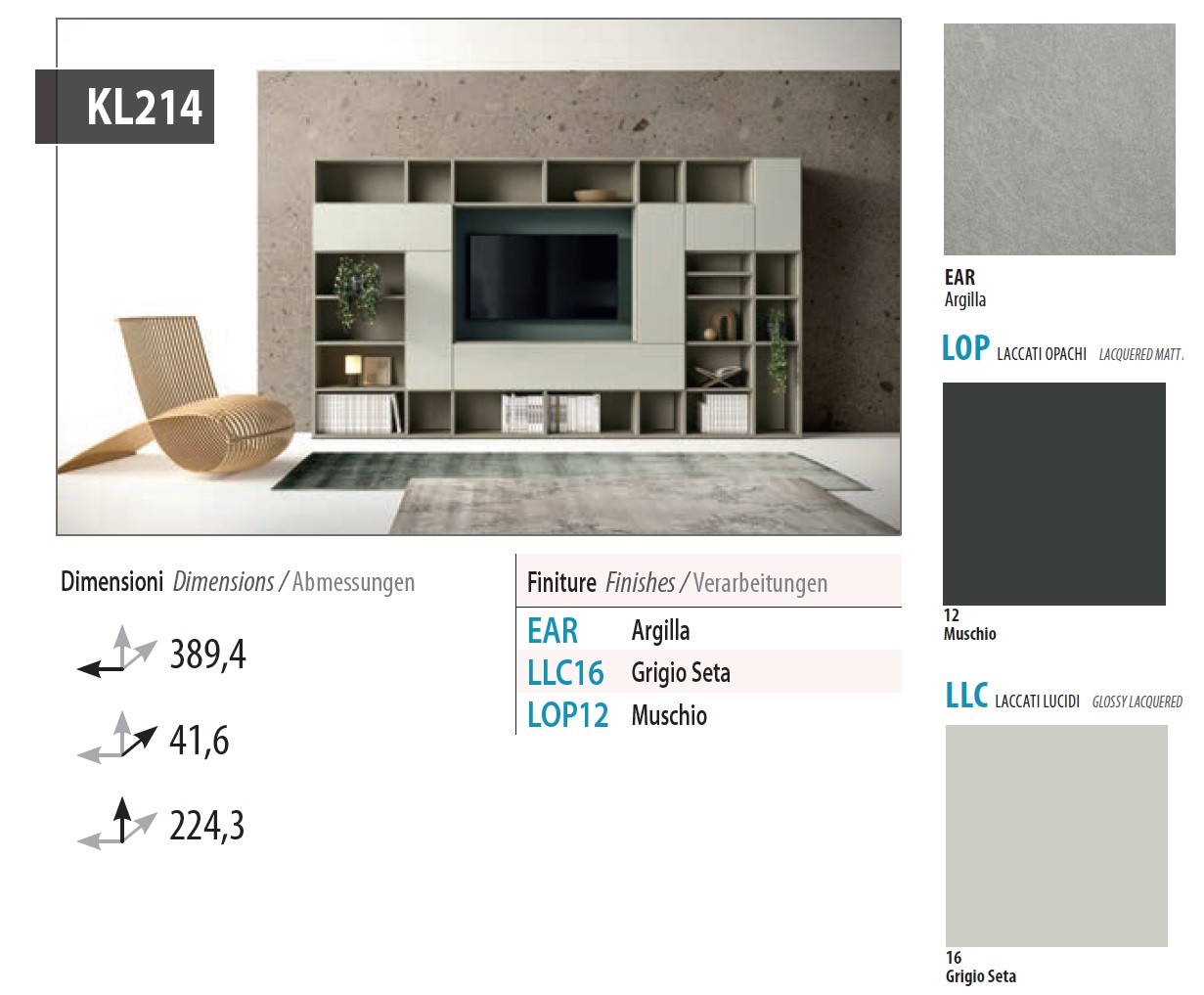 Meuble TV bibliothèque moderne asymétrique PERSONNALISABLE KL214 - KOSMOS MORETTI COMPACT